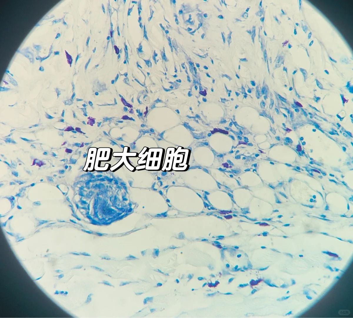 甲苯胺藍在染色肥大細胞、軟骨組織等方面具有顯著效果。肥大細胞內(nèi)的異染性顆??杀患妆桨匪{染成紫紅色,從而便于我們觀察和計數(shù)肥大細胞。