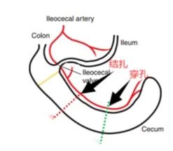 ▲結(jié)扎位置:距回盲瓣5±0.5mm