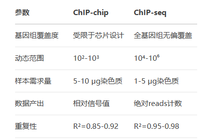 對(duì)于絕大多數(shù)現(xiàn)代研究,ChIP-seq在分辨率、靈敏度和數(shù)據(jù)質(zhì)量方面具有明顯優(yōu)勢(shì)。建議新建項(xiàng)目?jī)?yōu)先考慮ChIP-seq方案,而傳統(tǒng)ChIP-chip仍適用于特定驗(yàn)證性實(shí)驗(yàn)