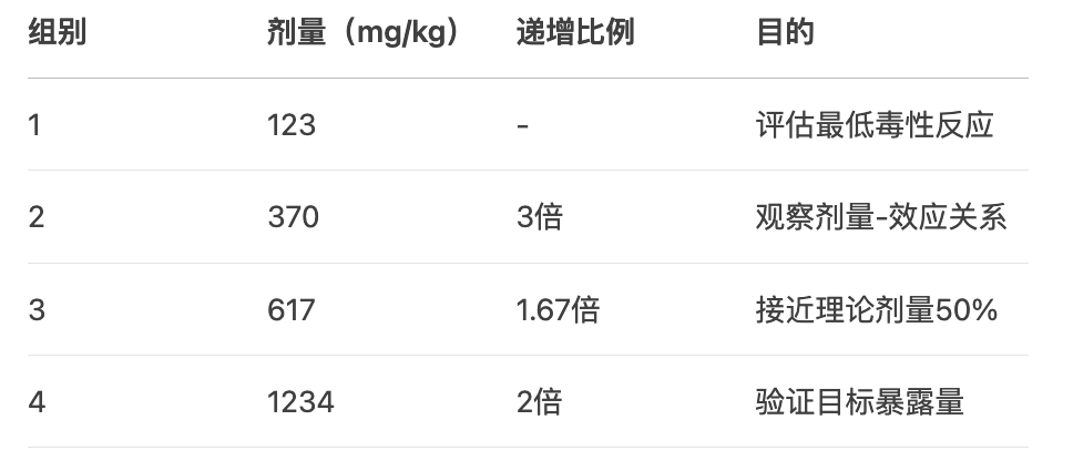示例:上述生物利用度校正后劑量為 1234 mg/kg,設定安全起始劑量,通常從校正后劑量的1/10開始,也就是起始劑量為123mg/kg。