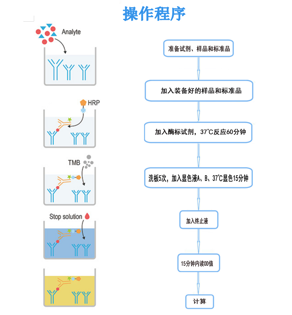 Step7:顯色---加入底物溶液,與酶標記二抗反應,產(chǎn)生顏色變化。這一步是實驗中的另一個關鍵步驟,顏色變化的深淺與樣本中抗體的含量成正比。