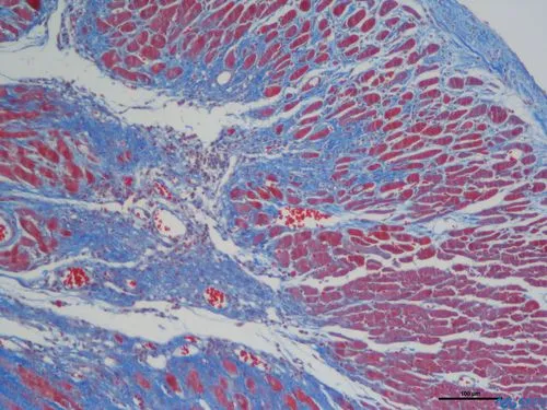 Step6:復(fù)染:接下來,使用Masson麗春紅酸性復(fù)紅液對切片進(jìn)行復(fù)染。這一步的目的是增強(qiáng)膠原纖維和其他組織結(jié)構(gòu)的顯色效果。