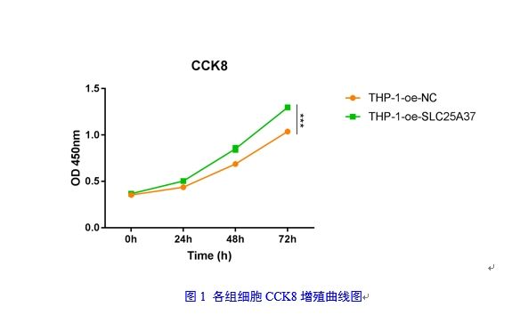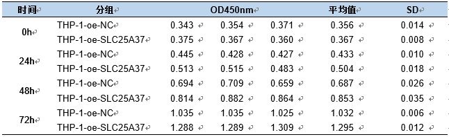 檢測(cè)THP-1-oe-NC、THP-1-oe-SLC25A37細(xì)胞增殖能力的變化。