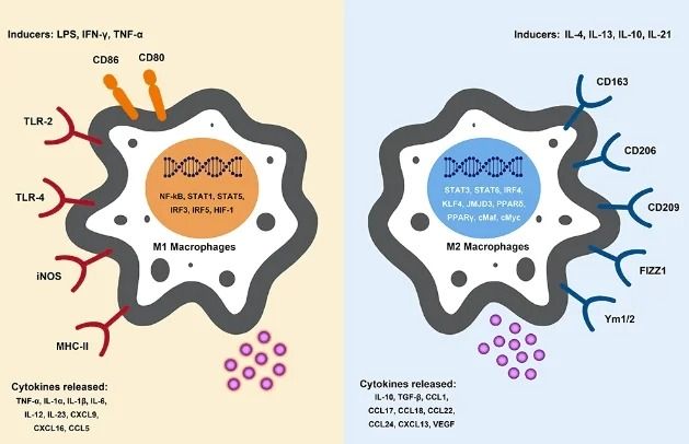 錯(cuò)綜復(fù)雜的免疫系統(tǒng)中,巨噬細(xì)胞如同一支訓(xùn)練有素的軍隊(duì),它們根據(jù)不同的戰(zhàn)場環(huán)境調(diào)整自身,守護(hù)著我們的健康。今天,我們就來深入了解這對免疫系統(tǒng)的“雙面衛(wèi)士”——M1與M2巨噬細(xì)胞,以及它們各自的標(biāo)志物。