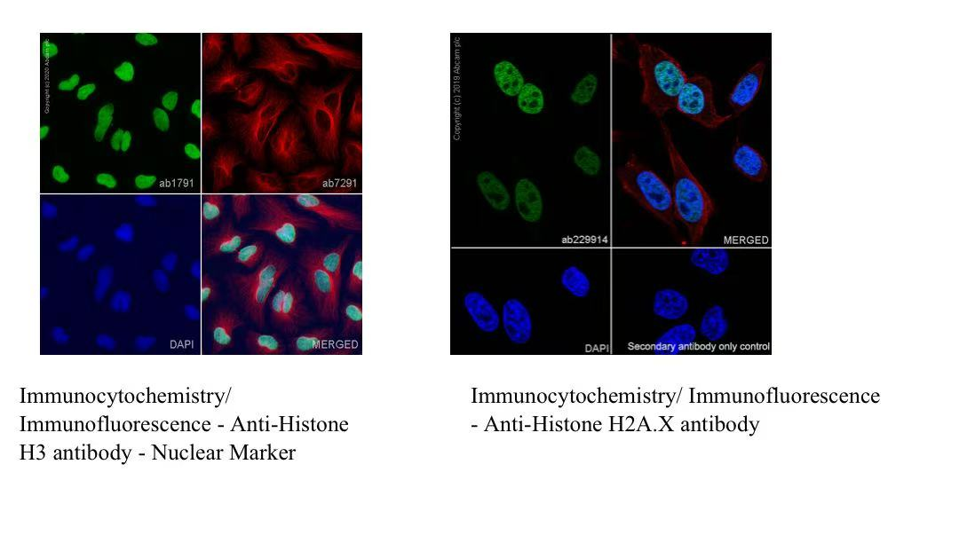 組蛋白H3(Histone H3):組蛋白是構(gòu)成染色質(zhì)的基本成分,組蛋白H3是其中一種。使用組蛋白H3的抗體進(jìn)行染色,可以清晰地顯示細(xì)胞核的形態(tài)和染色質(zhì)的分布。