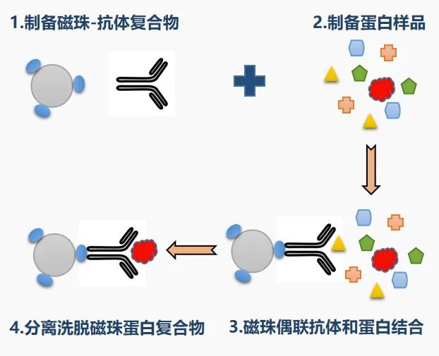 ⒍洗滌與洗脫?:使用洗滌液洗滌瓊脂糖珠或磁珠-抗原-抗體復合物多次,以去除未結合的蛋白和雜質。然后,使用洗脫液將結合在瓊脂糖珠或磁珠上的蛋白洗脫下來。