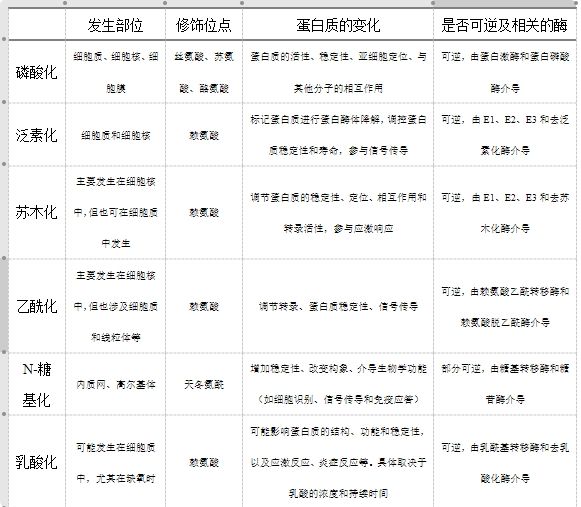 表一、不同蛋白質(zhì)翻譯后修飾的差異比較