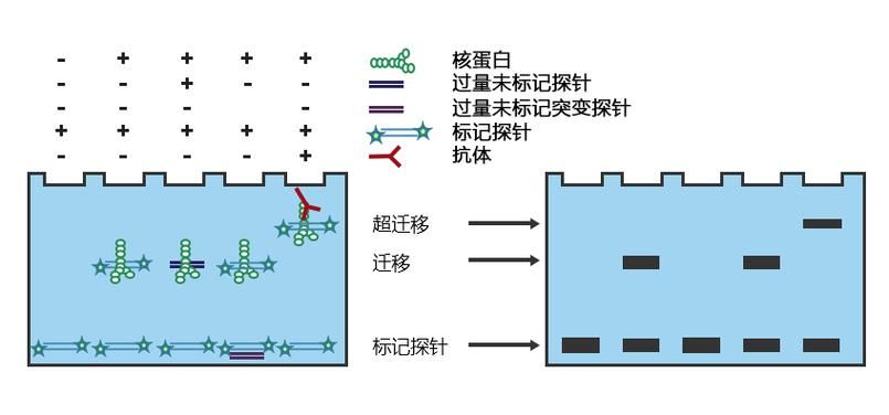 競爭EMSA凝膠遷移實驗用于評估不同DNA序列與同一蛋白質(zhì)的親和力。實驗中,將標(biāo)記的DNA片段與未標(biāo)記的競爭DNA片段同時與待測蛋白質(zhì)混合,形成DNA-蛋白質(zhì)復(fù)合物。通過凝膠電泳分離復(fù)合物與游離的DNA分子,觀察標(biāo)記DNA片段與競爭DNA片段與蛋白質(zhì)的結(jié)合情況。根據(jù)復(fù)合物在凝膠中的遷移速度和數(shù)量,可以評估不同DNA序列與蛋白質(zhì)的親和力。