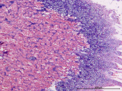 蘇木精-伊紅染色法簡稱HE染色法,是最常用的染色方法。蘇木精(hematoxylin)是陽離子染料,能夠?qū)⒓?xì)胞核內(nèi)的嗜堿性物質(zhì)染成藍(lán)紫色。伊紅(eosin)是陰離子染料,能夠?qū)⒓?xì)胞質(zhì)和膠原纖維等染成粉紅色。