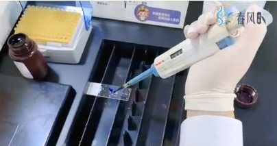 Step7:樣本封片: 在透明處理完畢后的組織上方滴加中性樹膠,玻片稍傾斜,用手將蓋片順玻片斜面輕放,防止氣泡產(chǎn)生。封片前需要烤干切片上的水分,否則鏡下觀察時有一層水霧,導致細胞輪廓不清楚。封片時只需用一次性滴管滴一兩滴即可,過少導致封片不完全,過多則容易中性樹膠外溢影響保存。