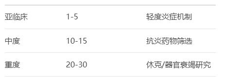 嚴重程度LPS劑量(mg/kg)適用研究