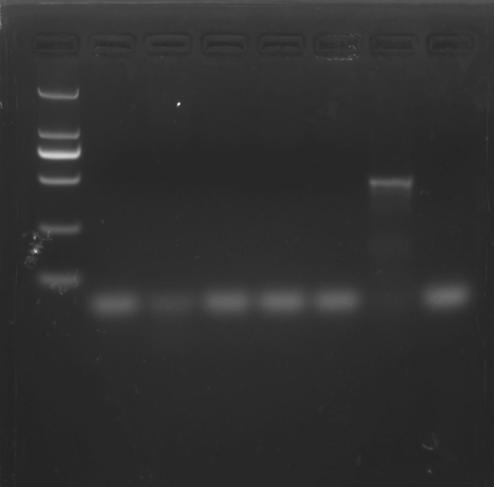 (4)把反應(yīng)管放入PCR儀中,設(shè)定以下條件,進(jìn)行PCR反應(yīng)。PCR的檢測下限是M. capricolum 1ng, M. hyopneumoniae和U. urealyticum 100pg、其他的Mycoplasma是10pg。但是Human DNA、Mouse DNA在100 ng時(shí)有非特異性片段擴(kuò)增。