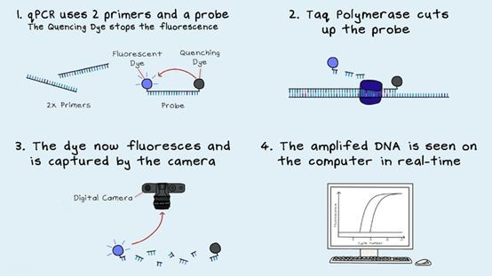 ①檢測(cè)方法:傳統(tǒng)的PCR技術(shù)主要通過(guò)凝膠電泳來(lái)檢測(cè)擴(kuò)增后的DNA,這種方法無(wú)法進(jìn)行定量分析。而QPCR技術(shù)則通過(guò)在反應(yīng)體系中加入熒光物質(zhì),利用熒光信號(hào)的積累實(shí)時(shí)監(jiān)測(cè)DNA的擴(kuò)增過(guò)程,從而進(jìn)行定量分析。