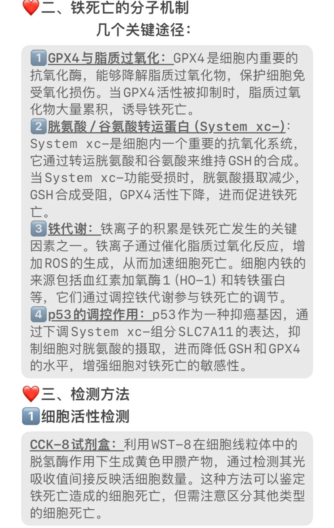 綜上所述,鐵死亡作為一種獨(dú)特的細(xì)胞死亡方式,在生物學(xué)和醫(yī)學(xué)研究中具有重要意義。通過(guò)深入研究鐵死亡的機(jī)制和應(yīng)用,有望為疾病治療和健康管理提供新的思路和方法。