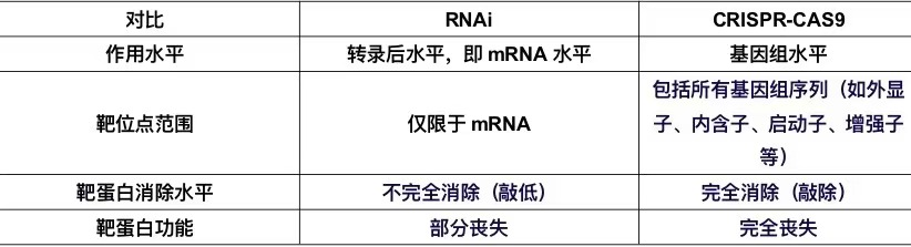 CRISPR-CAS9與RNAi的對比: