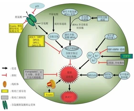 細胞鐵死亡(Ferroptosis)是一種鐵依賴性的新型細胞程序性死亡方式,區(qū)別于細胞凋亡和細胞自噬。其主要機制涉及鐵代謝紊亂、氨基酸抗氧化系統(tǒng)失衡和脂質過氧化物的集聚。