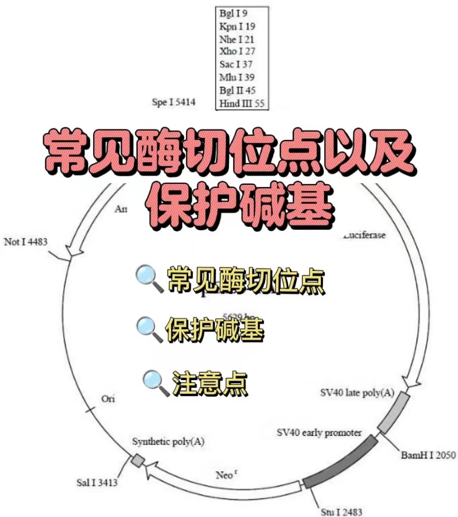 常見(jiàn)酶切位點(diǎn)以及保護(hù)堿基